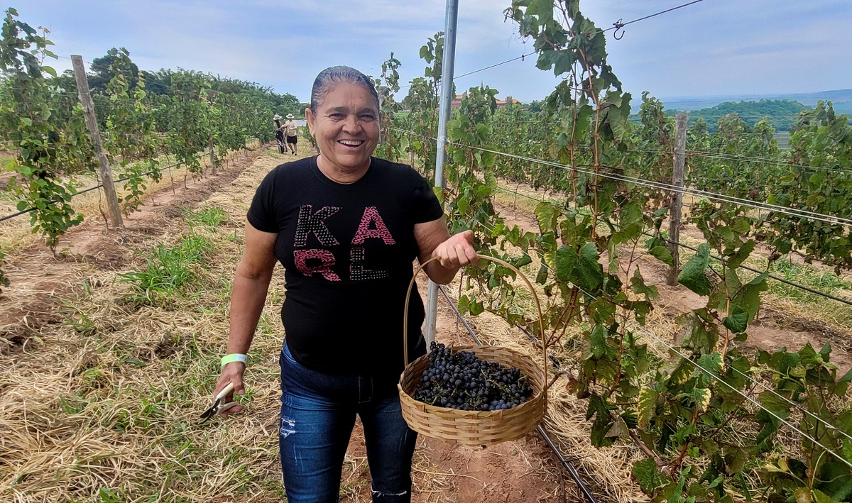 A aposentada Dalila Rodrigues de Oliveira, era uma das mais animadas ao viver essa experiência inédita na sua vida. "Estou colhendo uva com fartura", afirmou. Ela destacou também a construção do complexo de turismo e lazer: