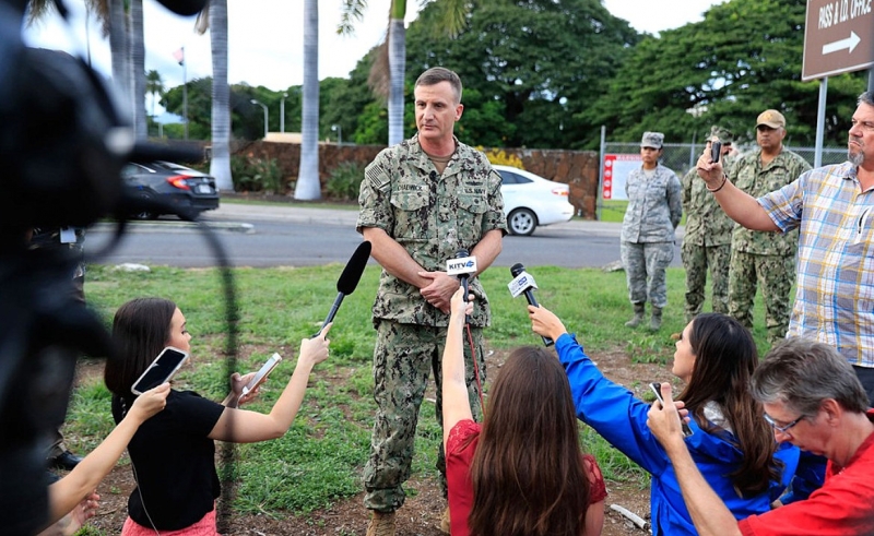 O site Hawaii News Now mostrou imagens de ambulâncias e veículos blindados mobilizados dentro da base.