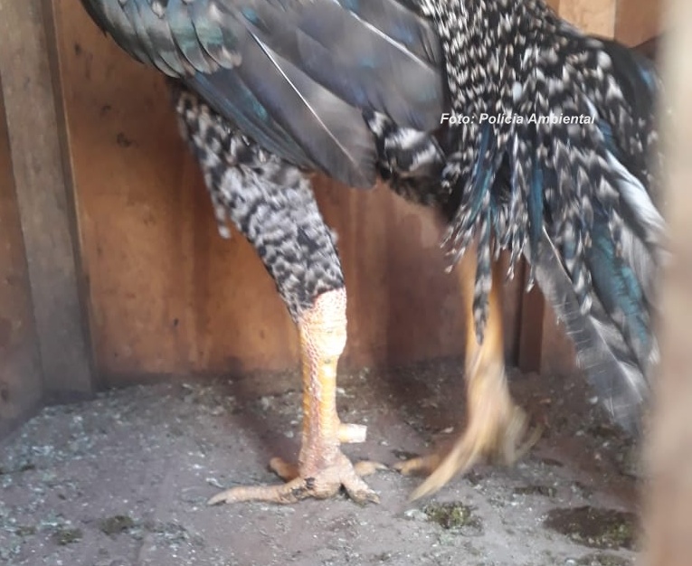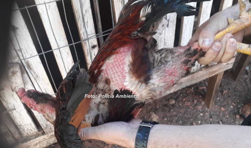 Após denúncia, os policiais foram até à rua Anita Garibaldi, onde encontraram os dois galos com sinais de maus tratos: espora serrada e ausência de penas nas pernas no peito e no pescoço. Foi aplicada multa de R$ 6 mil.