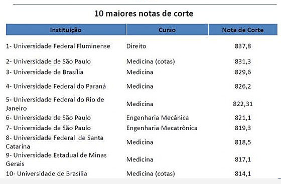 Veja os dez cursos com as maiores notas de corte no Sisu: