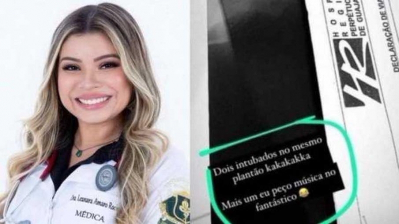 A médica Leanara Amaro Rocha fez uma postagem em uma rede social durante um plantão no Hospital de Campanha de Guajará-Mirim (RO), que trata pacientes com a covid-19, que causou grande repercussão e será motivo de investigação. "Dois intubados no mesmo plantão", postou a médica em seu stories do Instagram, rindo. "Mais um eu peço música no Fantástico."