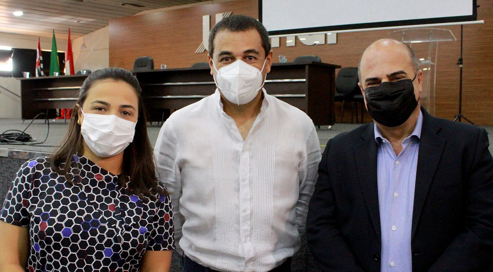 Marcelo Pelúcio ao lado de Fernanda Serva e Fábio Manhoso.