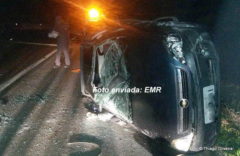 O médico ao visualizar o pneu tentou desviar e isso fez com que perdesse o controle do veículo (uma caminhonete Pick up) capotando e ficando de lado às margens da rodovia.
