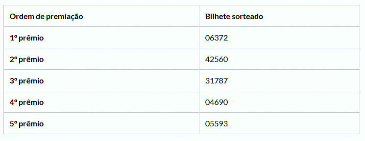 - Lotofácil: 10 – 08 – 06 – 24 – 18 – 20 – 19 – 13 – 22 – 01 – 11 – 02 – 05 – 04 – 07. Prêmio R$ 1,8 milhão;