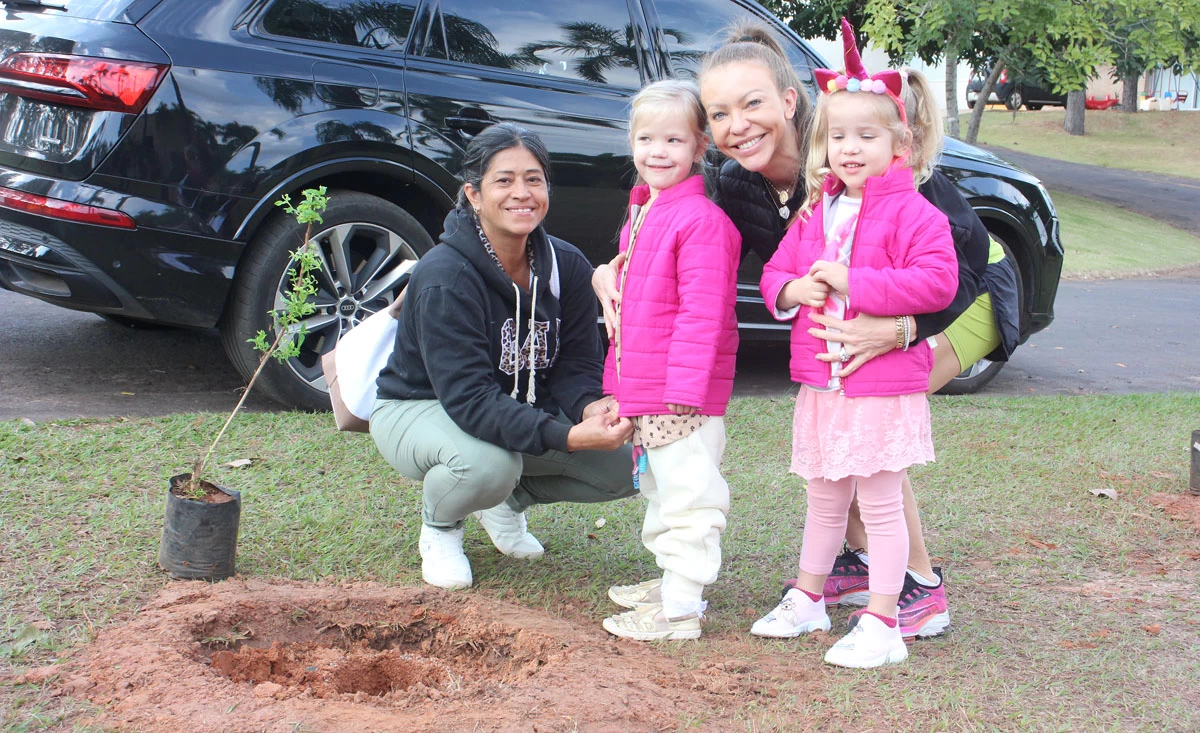 O condomínio verde de alto padrão de Marília, de moradia integradas à natureza, reúne moradores para uma ação de arborização e de educação ambiental