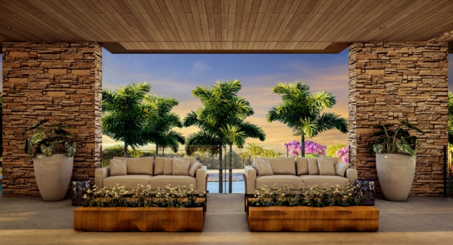 Piscina com borda infinita é um dos diferenciais na área de lazer de 20 mil m².