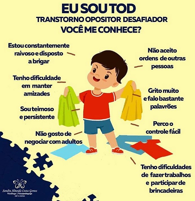 O TOD se caracteriza por comportamentos que desafiam qualquer tipo de autoridade — como pais, professores ou outros adultos responsáveis. Esse padrão de comportamento costuma afetar negativamente o ambiente familiar e o desempenho escolar.