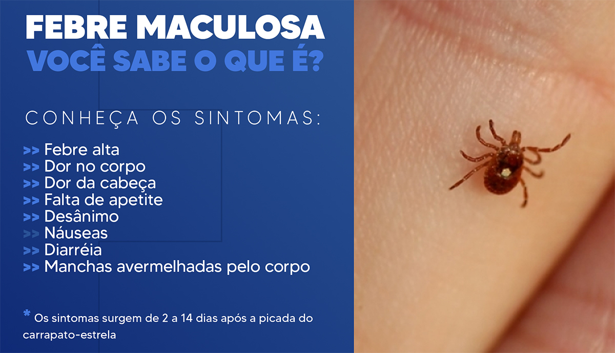 A febre maculosa é uma doença infecciosa causada por uma bactéria transmitida através da picada de uma das espécies de carrapato, o carrapato-estrela.