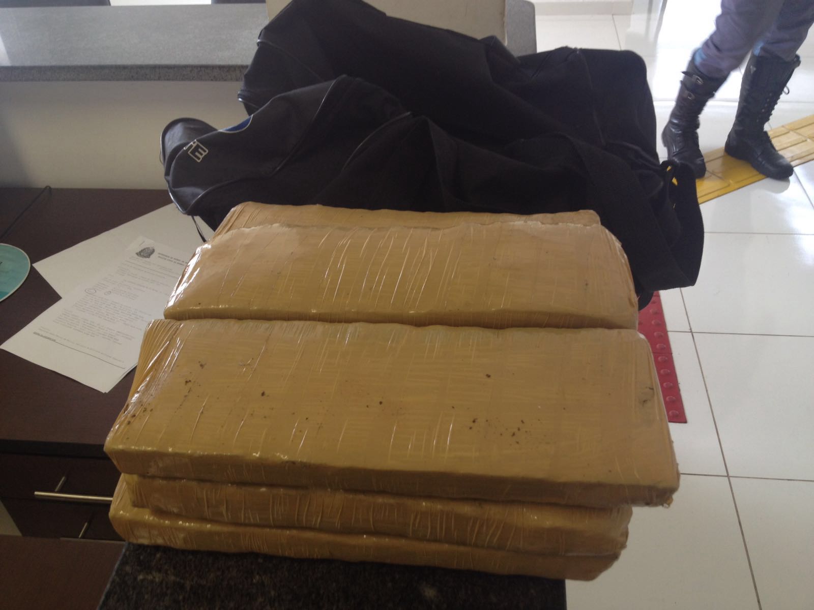 Ao vistoriar o veículo, os patrulheiros localizaram uma mala de viagem pertencente ao menor, onde continha 8 tijolos de maconha, que totalizaram 8 quilos e 180 gramas da droga.