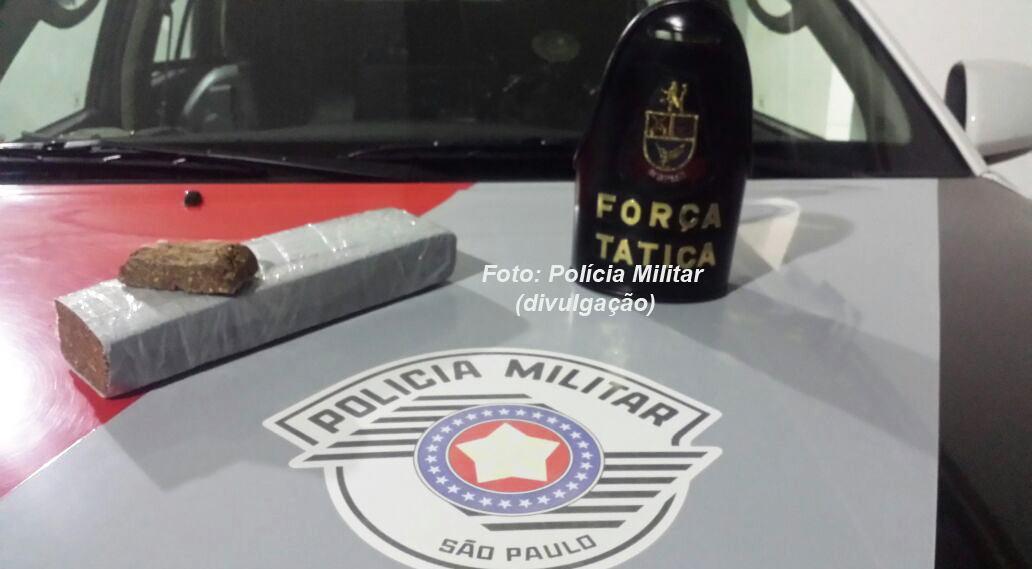 Em operação pelo bairro jardim Maracá, equipes de Força Tática suspeitaram da atitude de um indivíduo de 21 anos que carregava uma mochila. Ele demonstrou muito nervoso ao avistar as viaturas. Na abordagem, foi localizado dentro da bolsa um tijolo de maconha pesando pouco mais de um quilo.