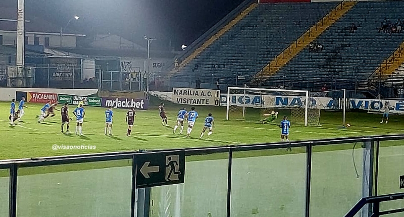 O "magro" 1 a 0 quase se transformou num empate, no finalzinho, numa conbrança de pênalti, defendida pelo goleiro Filipe Garça.