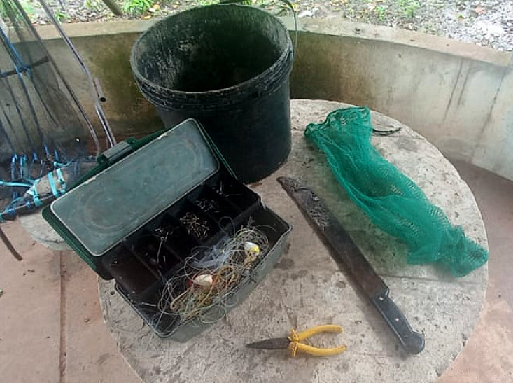 O local onde o pescador foi flagrado é proibido uma vez que é afluente direto do Rio do Peixe. Além da multa, todos os petrechos foram apreendidos pela Polícia Ambiental.
