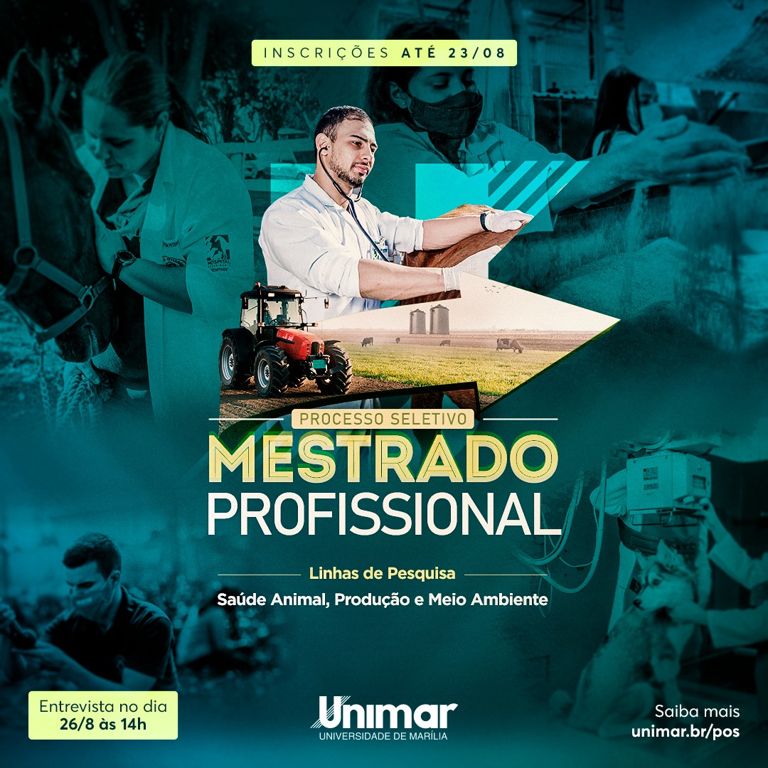 As inscrições para o programa de Pós-graduação em Saúde Animal, Produção e Ambiente da Universidade de Marília (Unimar) encerram nesta terça-feira (dia 23).