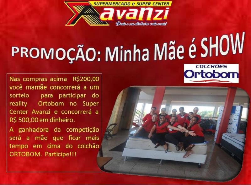 Com o objetivo de inovar e contar com a participação do público, a Loja Colchões Ortobom de Assis, representada pelo franqueado Edilson Faceroli em parceria com o Super Center Avanzi da cidade de Tarumã (95 quilômetros de Marília) criou a campanha “Minha mãe é um show!”.