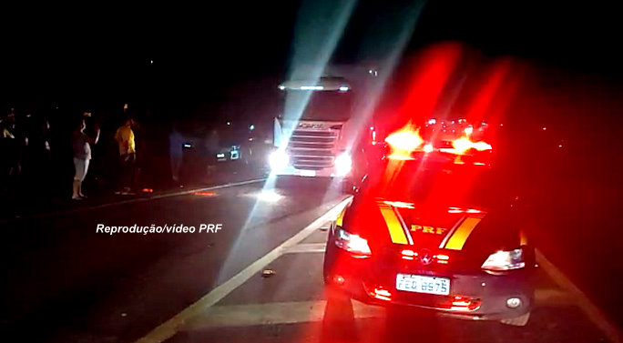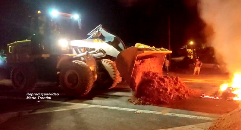 Após cerca de cinco horas, pouco antes da meia noite de ontem a Polícia Rodoviária Federal conseguiu desbloquear a rodovia BR-153 (Transbrasiliana), na altura do município de Lupércio.