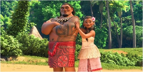Maui, por sua vez, passa de descompromissado e egoísta a herói arrependido ao ajudar a garota a cumprir seu objetivo. Interpretado na versão em inglês por Dwayne Johnson, ele é inspirado em uma das principais figuras lendárias da mitologia polinésia e sua exploração comercial causou polêmica no Pacífico. Sua representação como figura corpulenta é encarada como uma perpetuação de estereótipos, mas o carisma do personagem compensa qualquer clichê.