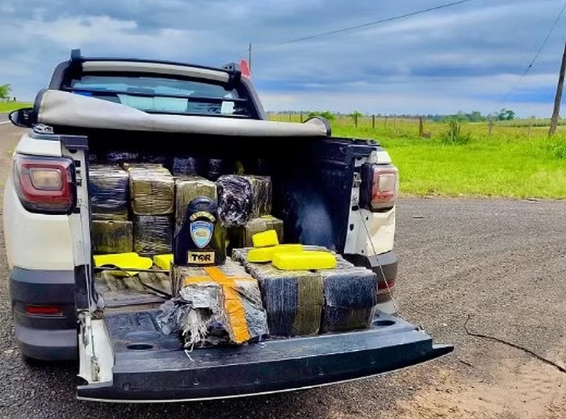Ao fiscalizar o veículo, que apresentava excesso de carga (estava muito pesado) os policiais encontraram a carga de maconha e de cocaína que era transportada na carroceria de uma caminhonete Fiat Strada.