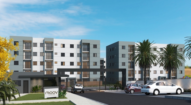O Moov Esmeraldas oferece apartamentos com um ou dois quartos de 46m2 a 64 m2 (em até seis modelos de planta) em torres de cinco andares, com elevadores, vaga térrea de veículo, e um área social integrada completa, com quadras de beach tennis, piscina adulto e infantil, solário, academia fitness, salão de jogos, salão de festas, playground, quiosques para churrasco e campo recreativo.