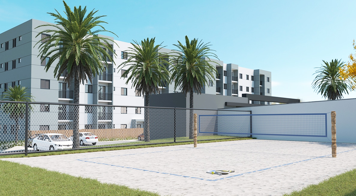 Uma das características do empreendimento é já vir com quadra de beach tenis, uma nova tendência esportiva do interior.