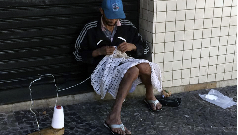 Com um cuidado e criatividade sem igual, este morador de rua do centro de Belo Horizonte possui uma maneira bastante interessante de garantir seu sustento: ele faz tricô e crochê, é realmente um artista! Clayton já é conhecido na rua Timbiras e diz que tricotar o ajudou a superar muitas dificuldades.