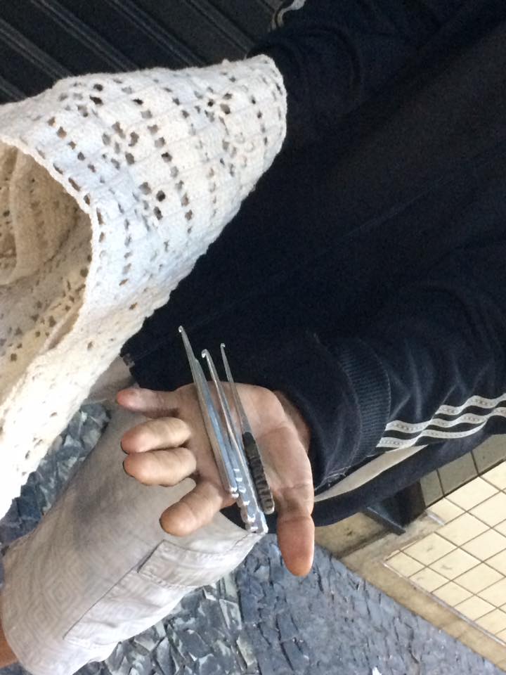 Como sempre foi muito criativo e cuidadoso, ele mesmo fabricou as agulhas com as quais trabalha, assim como o apoio para girar o carretel de linha. Essa atividade o ajuda a lidar com os problemas de ser um morador de rua, mantém sua cabeça ocupada e garante sua sobrevivência.
