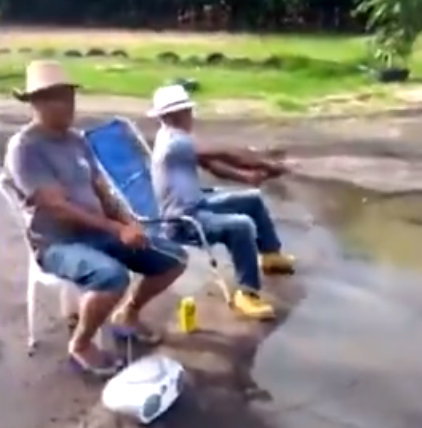 Moradores do bairro Marina Moretti, na zona norte de Marília, fizeram um vídeo bem-humorado para chamar a atenção do poder público e simularam uma pescaria em um buraco de vazamento de esgoto.