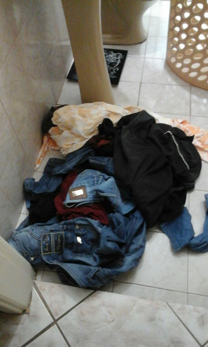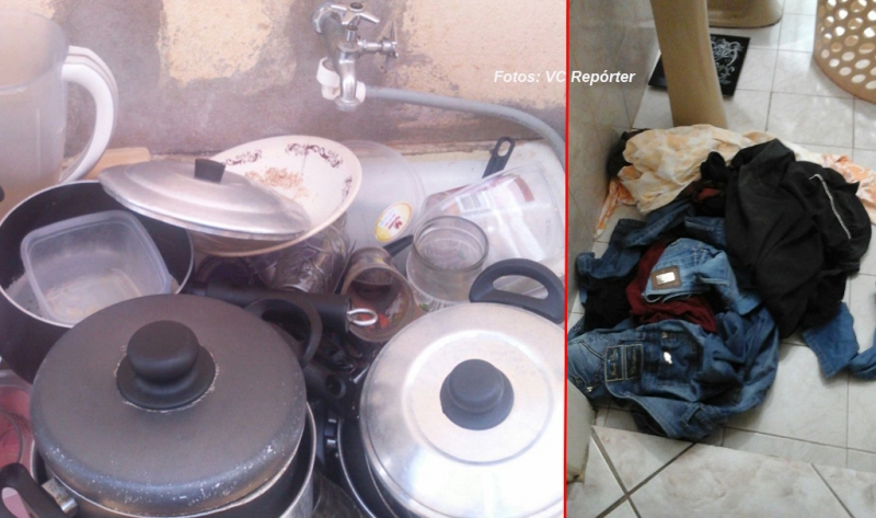 Moradora do Nova Marília (proximo igreja Santa Rita) mostra roupa suja acumulada.