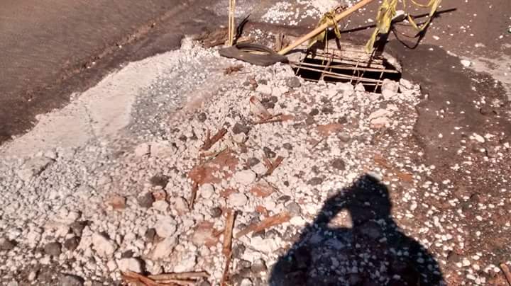 Dessa forma, uma das pistas está interditada. A sinalização é precária e, para complicar ainda mais, o local fica numa baixada e há risco de acidentes. O problema já se arrasta há mais de 30 dias, sem solução.