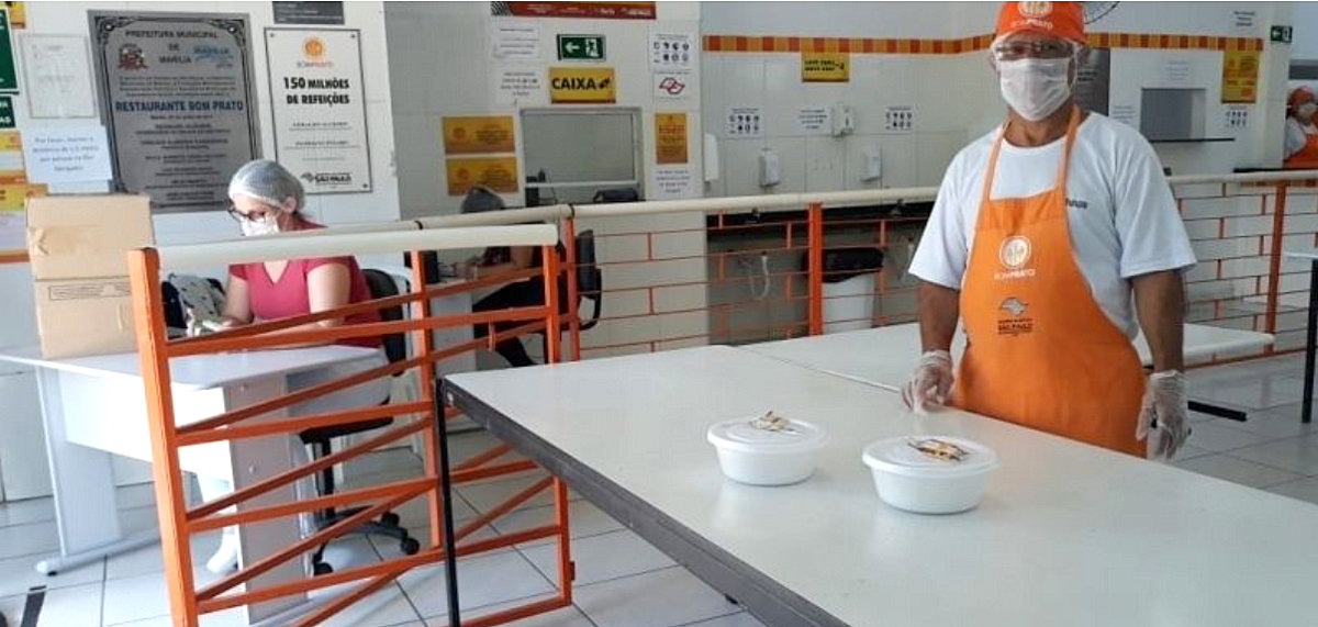 Para evitar aglomeração de pessoas neste período de pandemia, tanto o café da manhã como o almoço e o jantar o restaurante Bom Prato fornece café da manhã, almoço e jantar em embalagens para que as pessoas possam pegar e comer em outro lugar.