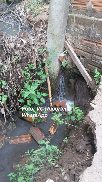 O esgoto passa ao lado das casas. perigo à saúde pública.