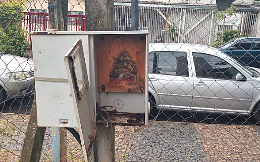 Quanto ao vazamento e falta de pressão no poço do bairro Costa e Silva, essa situação teria sido causada pelo furto de cabos e equipamentos elétricos do poço artesiano (foto).