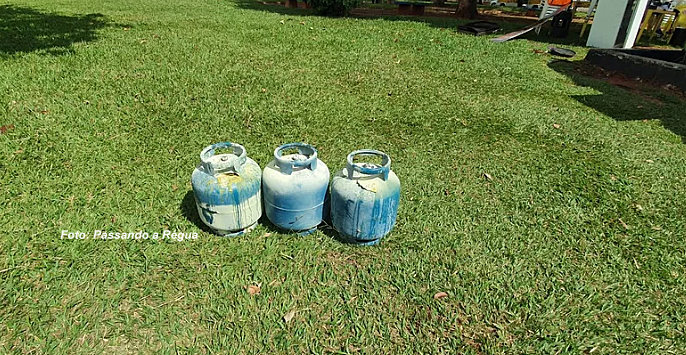 Botijões de gás retirado pelos Bombeiros do trailer.