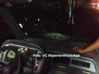 Como impacto, o parabrisa do ônibus chegou a ficar danificado.