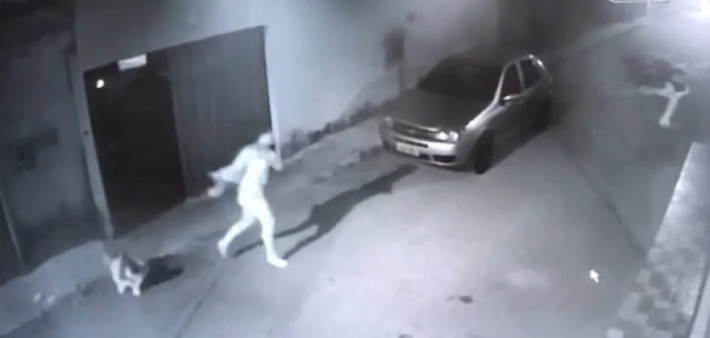 Câmeras de segurança registraram o momento que Cacia Regina saiu de casa correndo e pediu socorro aos vizinhos. Mesmo ferida, a mulher conseguiu sair de casa e pedir ajuda aos vizinhos.