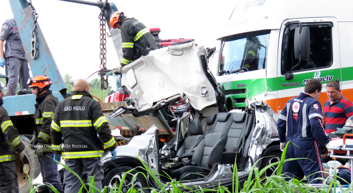 Ele reduziu a velocidade e também o Honda que vinha logo atrás. Mas, o condutor da carreta não teria conseguido brecar a tempo, prensando o carro entre os dois veículos pesados. Uma ambulância e mais um carro também se envolveram na colisão, resultando em três vítimas.