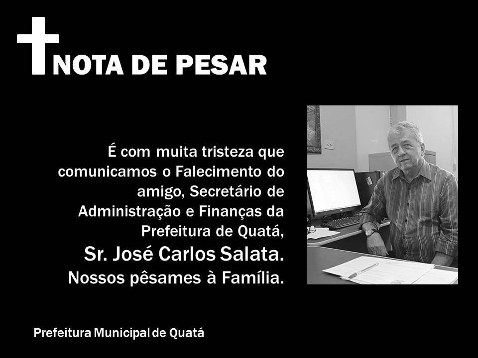 Foi sepultado neste sábado o secretário de Administração e Finanças de Quatá, José Carlos Salata, de 75 anos. Ele é a segunda vítima fatal da Covid-19 na cidade que fica a cerca de 100 quilômetros de Marília.