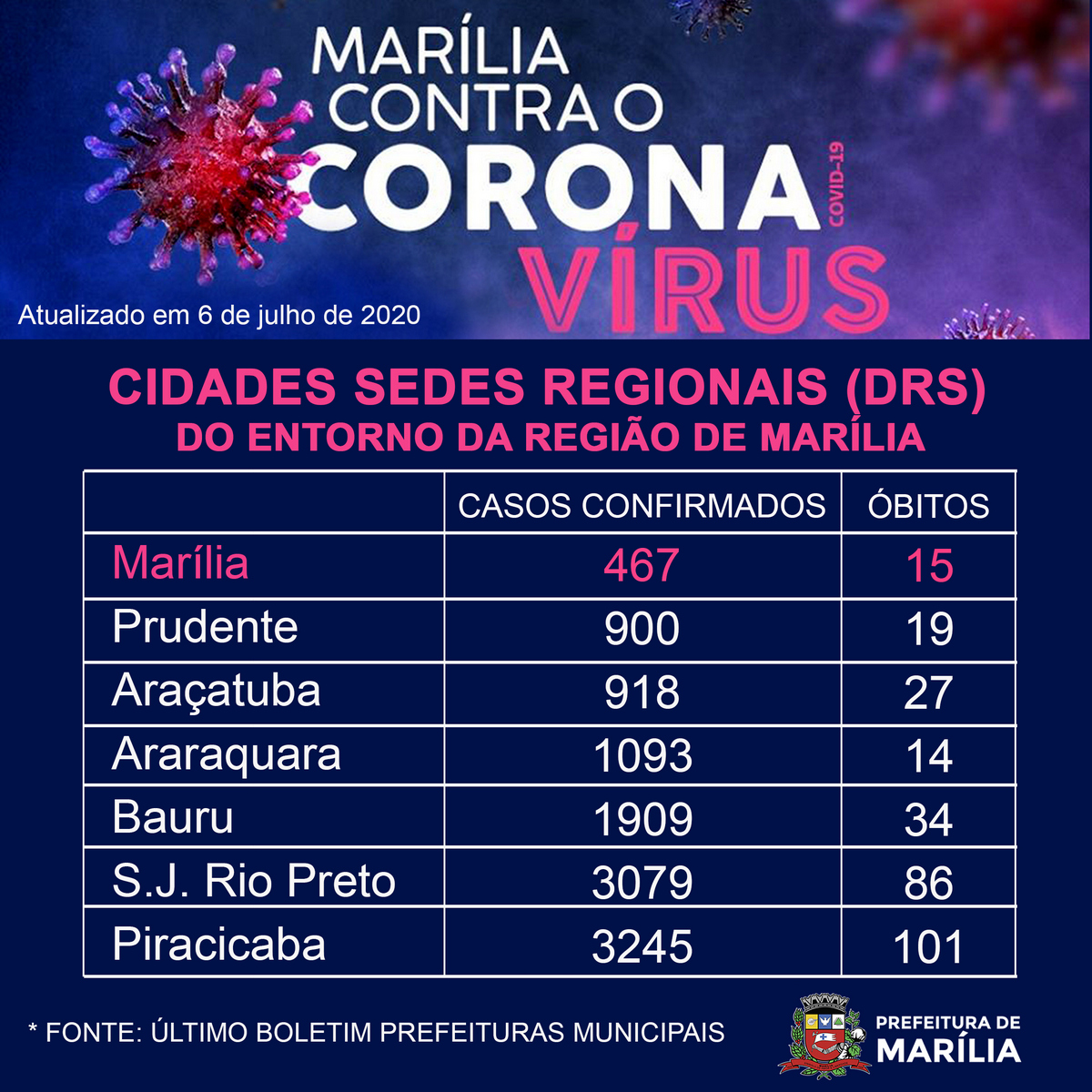 A semana começou com mais três mortes por Covid-19 na região de Marília. Além de um na própria cidade (homem de 85 anos), as secretarias municipais da Saúde de Garça e Paraguaçu Paulista também confirmaram nesta segunda-feira óbitos pelo novo coronavírus.