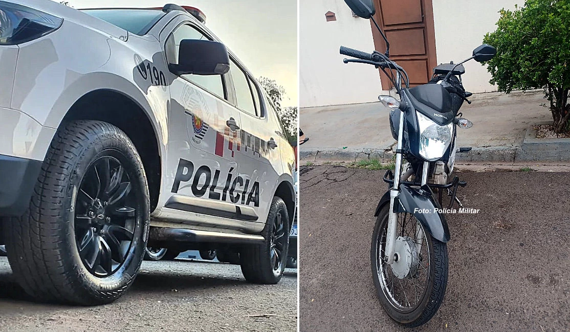 A PM foi acionada e passou apurar o caso. Em determinado momento, houve a informação de que a motocicleta estava sendo rastreada. As equipes foram ao local encontrando o veículo abandonado e um suspeito correndo, com um capacete.
