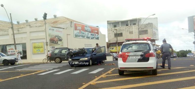 Mais acidente de trânsito envolvendo carro e moto foi registrado no cruzamento da avenida Sampaio Vidal com o acesso proveniente da rua São Carlos, no centro de Marília, durante a manhã desta sexta-feira (18). A motocicleta ficou presa em cima do carro, chamando a atenção de quem passava pela via, que fica próxima à importantes locais de serviço como o PoupaTempo e GanhaTempo.