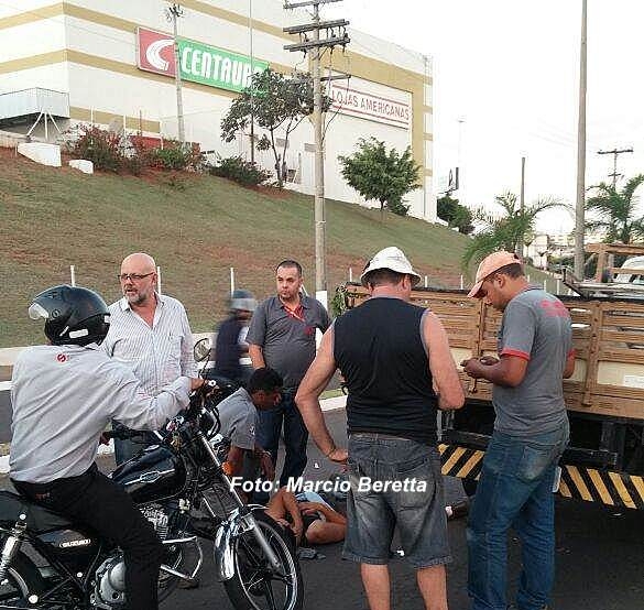 Um motociclista que ainda não teve o nome divulgado, ficou ferido num acidente ocorrido há pouco na avenida que dá acesso ao Marília Shopping. De acordo com testemunhas, ele teria colidido contra a traseira de um caminhão e sofreu ferimentos num dos ombros.