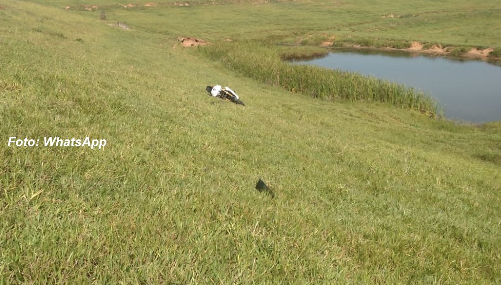A motocicleta foi parar numa ribanceira, após bater numa cerca.