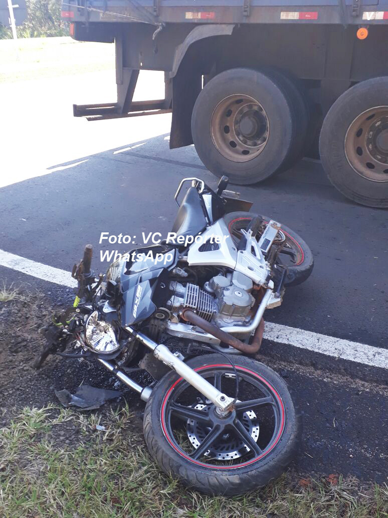 O acidente aconteceu no trevo de Alvinlândia, na manhã deste domingo (10). Por motivos que ainda estão sendo apurados pela polícia, a carreta e a moto bateram naquele local.