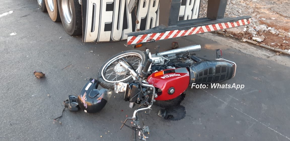 O motociclista perdeu o controle e bateu no parachoque da carreta que estava estacionada.