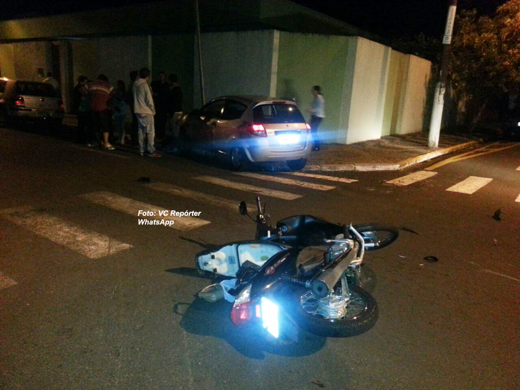 Uma equipe do Resgate do Corpo de Bombeiros está neste momento no local do acidente para prestar atendimento à vítima. Ela teria sofrido ferimentos numa das pernas. No local há um semáforo. A polícia vai apurar quem teria desrespeitado a sinalização, ou seja, o condutor do carro ou da moto. O carro é um Ford KA, placas de Santo Antonio da Platina (PR) e a moto uma honda Biz, placa de Marília.
