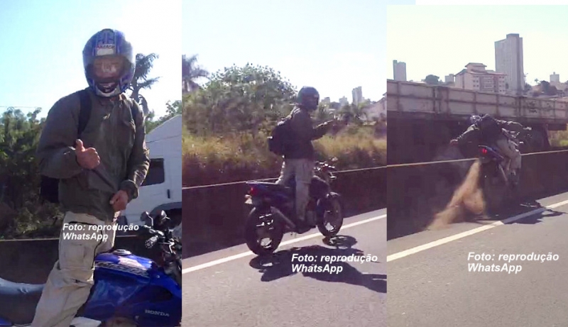 Um vídeo que começou a circular agora à tarde nas redes sociais mostra um motociclista que se deu mal ao fazer manobra arriscada em plena rodovia do Contorno,. Ele resolveu se levantar do banco, soltou as mãos do guidão e começou a brincar com o motorista que seguia ao lado. Logo depois perdeu o controle e chocou-se contra a mureta de proteção.