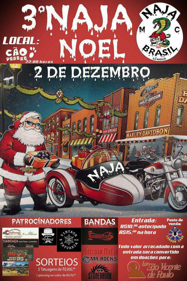 Será o 3º Naja Noel, com apresentação de bandas e cuja renda será revertida integralmente em prol do Lar.