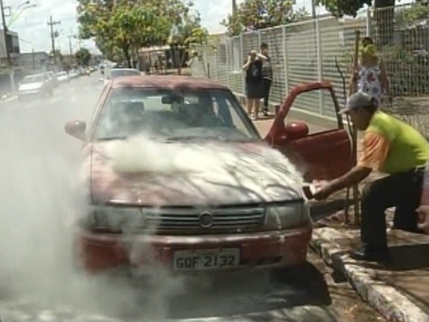 Pessoas que passavam pelo local ajudaram a apagar o fogo usando extintores de outros veículos. Os bombeiros foram chamados, mas as chamas no motor já tinham sido controladas. Ninguém ficou ferido.