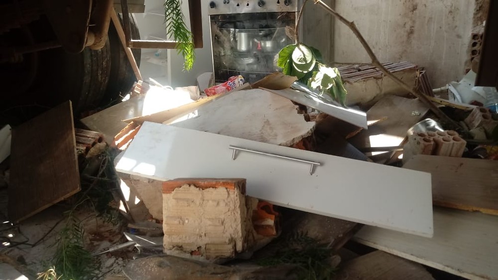A dona da casa destruída, Thays Santos Pereira, de 25 anos, contou sobre o susto e disse que perdeu tudo. Ela deixou a casa junto com a filha de dois anos segundos antes do acidente.