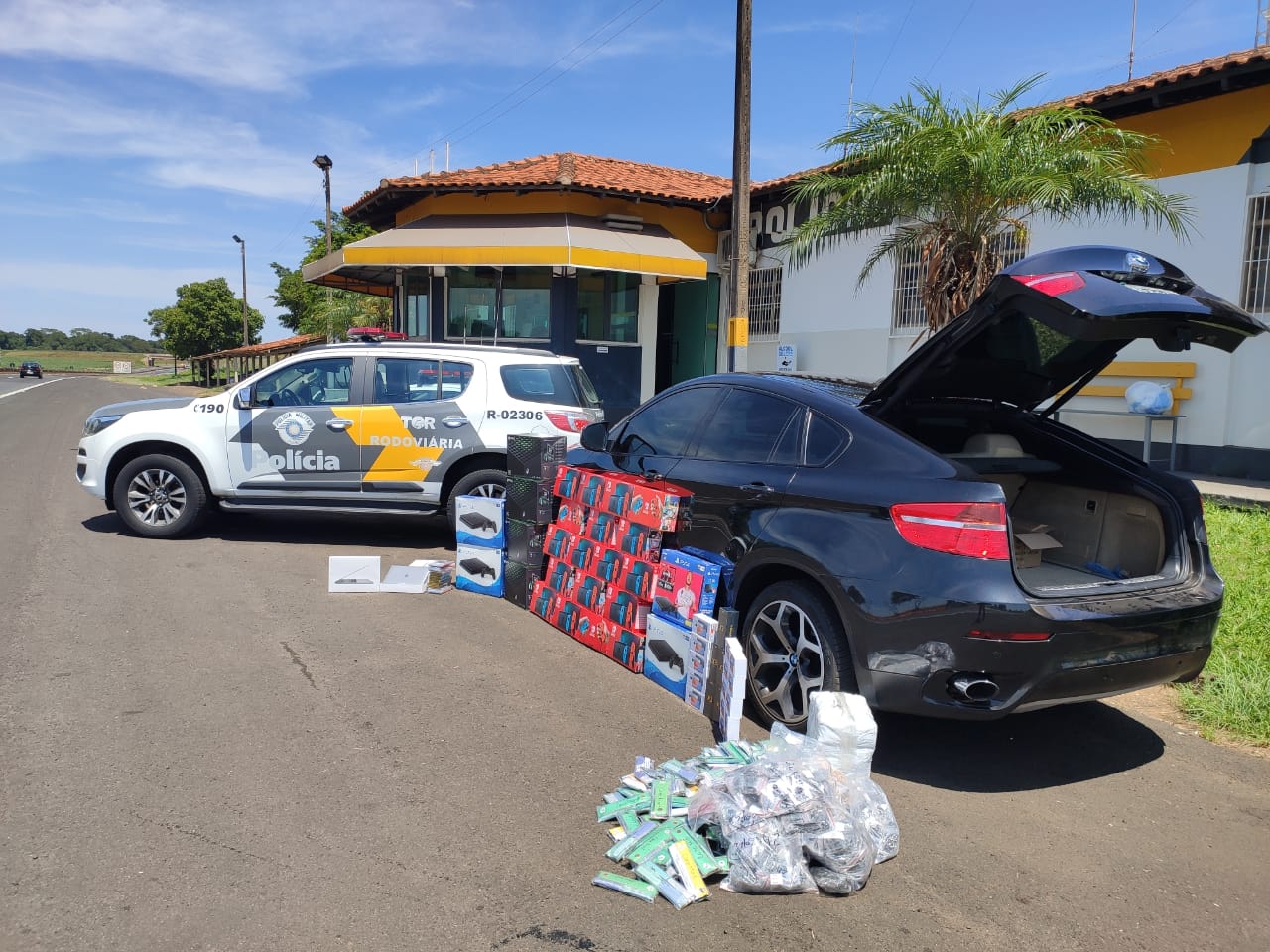 Os policiais patrulhavam a rodovia quando abordaram o automóvel BMW com placa de São Paulo e o nervosismo exagerado denunciou o motorista de 37 anos, que foi preso com produtos eletrônicos contrabandeados do Paraguai, no quilometro 301 da SP-225, em Santa Cruz do Rio Pardo, na manhã deste domingo (29).