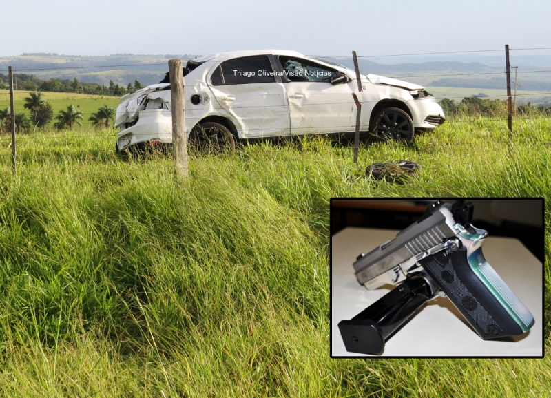 O Corpo de Bombeiros despachou uma unidade de Resgate ao local, e durante o atendimento médico, encontraram um carregador de pistola na cintura de Roberto. Durante busca no veículo, encontraram a arma, uma pistola Taurus PT58, no calibre .380, com numeração adulterada. A arma estava desmuniciada.